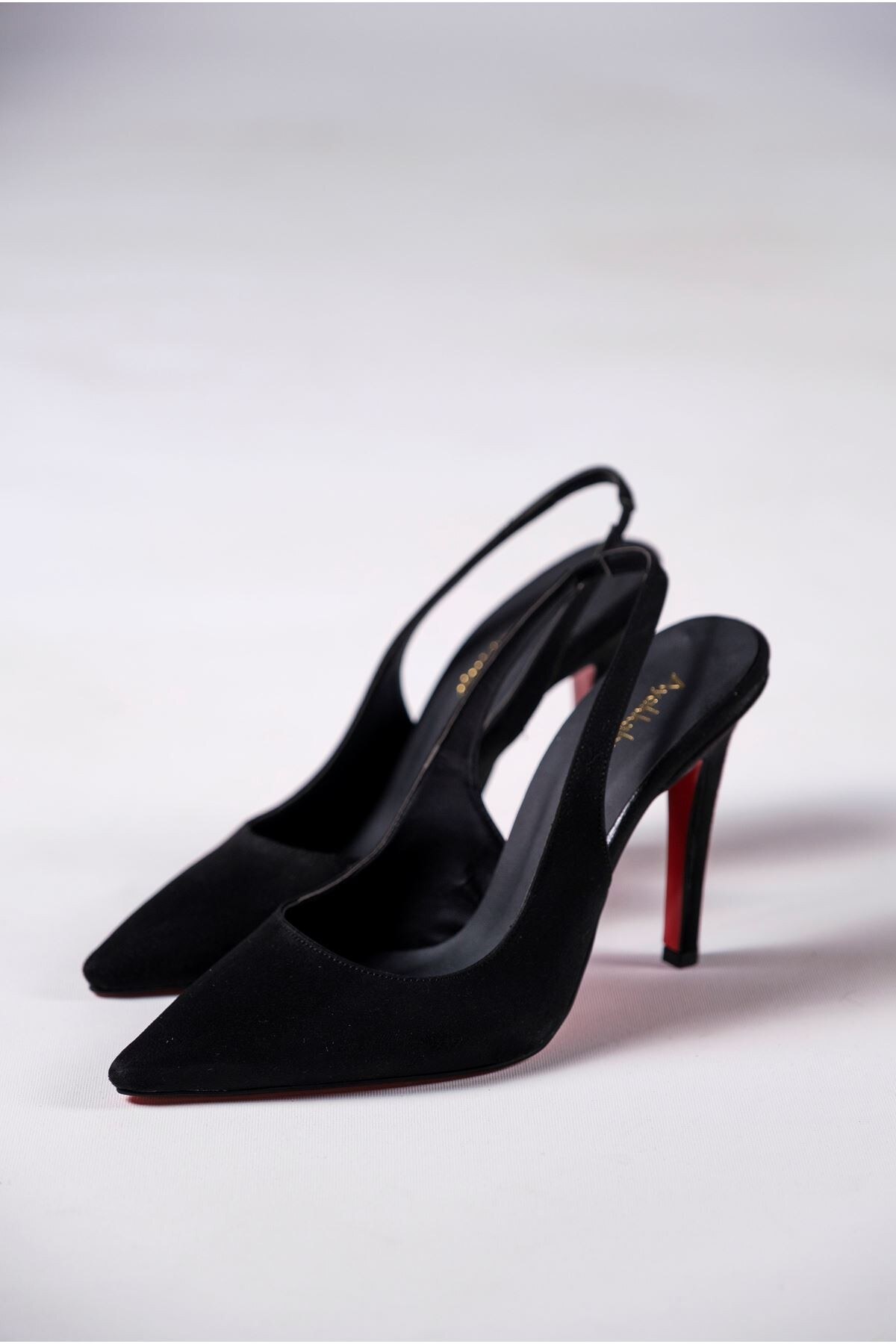 Kadın Arkası Açık Sivri Burun Topuklu Ayakkabı Madison Siyah Süet