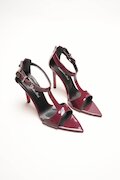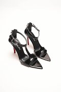 T-bantlı Toka Detaylı Sivri Burun İnce Topuklu Stiletto Ayakkabı Tories Siyah Rugan